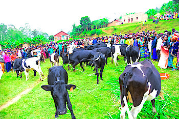 Imiryango 20 yo mu Murenge wa Kabacuzi yorojwe inka zatanzwe ku bufatanye bw'Akarere n'Umushinga ugamije guteza imbere ubworozi bw'inka zitanga…