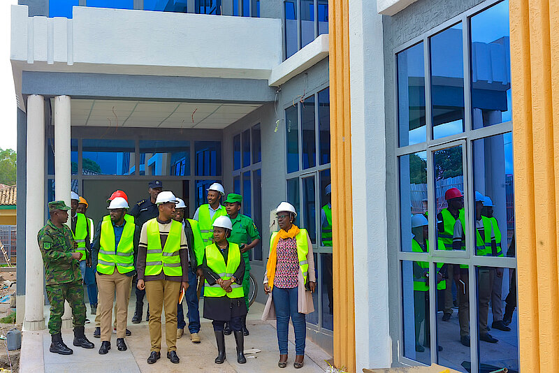 Nyuma yo kuganira ku mihigo, Minisitiri NYIRAHABIMANA Solina ari kumwe n’ubuyobozi bw’Akarere basuye inyubako izakoreramo ibiro by'Umurenge wa Nyamabuye bareba aho imirimo yo kuwubaka igeze. Kubaka umurenge wa Nyamabuye akaba ari kimwe mu bikorwa bikubiye mu mihigo y’Akarere ya 2023-2024.