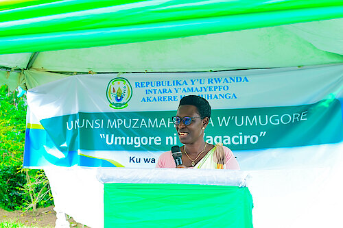 Mu ijambo ry’ikaze, Umuyobozi w’Akarere Madamu Kayitare Jacqueline yashimiye abagore bari mu rwego rw’Abikorera bafatanyije n’Inama y’igihugu y’Abagore kuva ku rwego rw’Akarere kugera ku Mudugudu bakubaka amazu cumi n’abiri ya ba Mutimawurugo batishoboye.