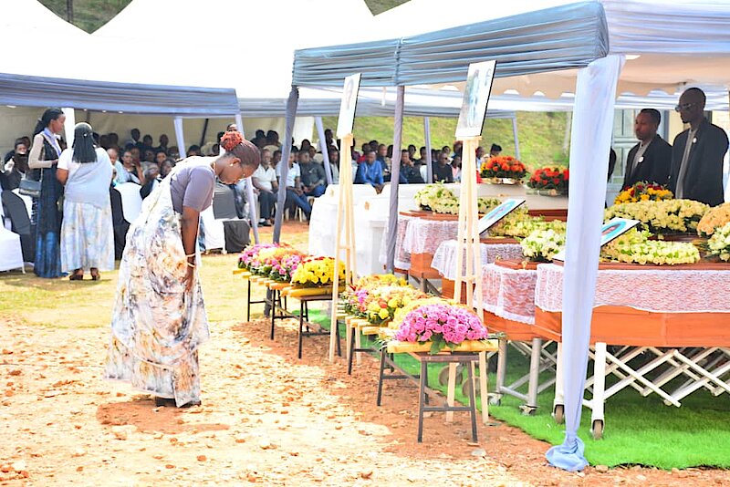 Iki gikorwa cyasojwe n’umuhango wo gushyingura mu cyubahiro imibiri 47 y’abazize Jenoside yakorewe Abatutsi mu 1994 ndetse no gushyira indabo kuri uru Rwibutso mu rwego rwo kunamira inzirakarengane ziruruhukiyemo.