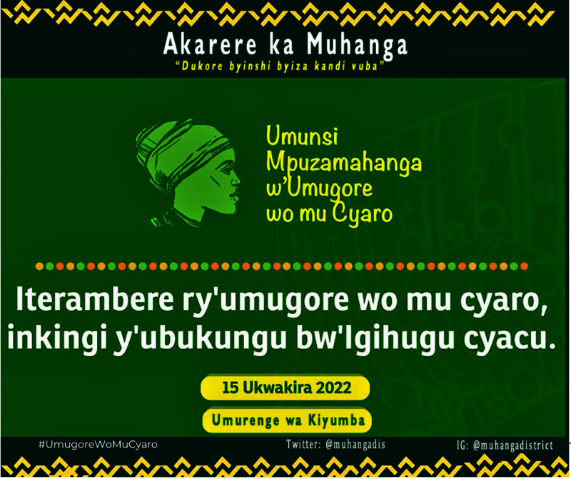 Kuri uyu wa gatandatu tariki ya 15 Ukwakira 2022 mu Mirenge yose igize Akarere ka Muhanga, hizihijwe Umunsi Mpuzamahanga w'Umugore wo mu cyaro wari ufite insanganyamatsiko igira iti: "Iterambere ry'umugore wo mu cyaro, Inkingi y'ubukungu bw'Igihugu."