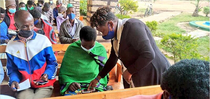 Umukozi w’Umurenge wa Shyogwe ahugura abaturage bahawe Telefoni