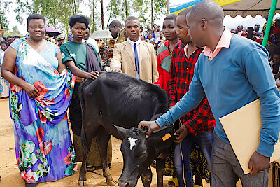 Muri ibi birori kandi imiryango itanu iyobowe n'abagore iri ku rutonde rwa Girinka yagabiwe inka ndetse umugore witeje imbere ahabwa gaz izajya imufasha mu guteka.