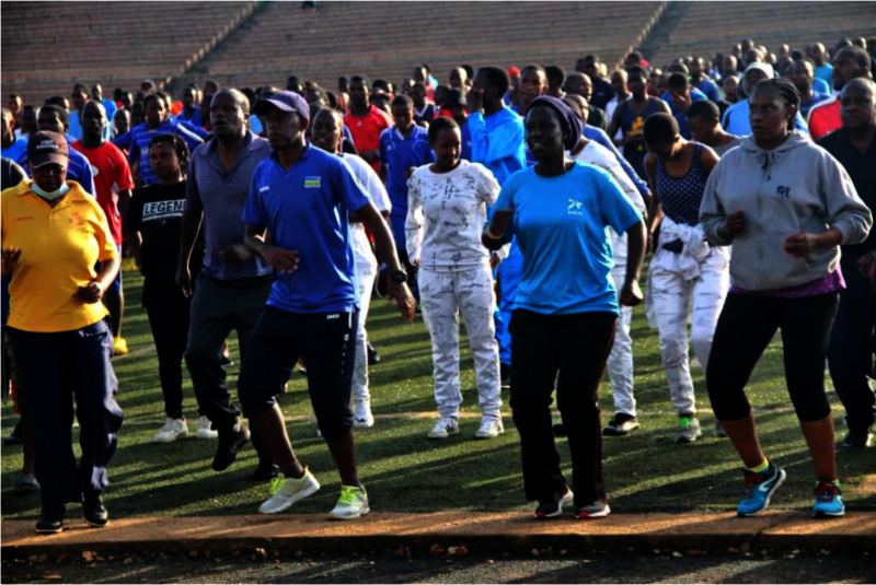 Umuyobozi w’Akarere ka Muhanga n’uw’Akarere ka Huye bari bitabiriye siporo rusange