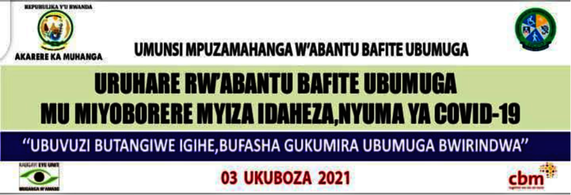 Kuri uyu wa 03/12/2021, mu Mirenge yose igize Akarere ka Muhanga, hijihijwe Umunsi Mpuzamahanga w’abantu bafite ubumuga wari ufite ufite insanganyamatsiko igira iti: "Uruhare rw'abantu bafite ubumuga mu miyoborere myiza idaheza, nyuma ya Covid19".