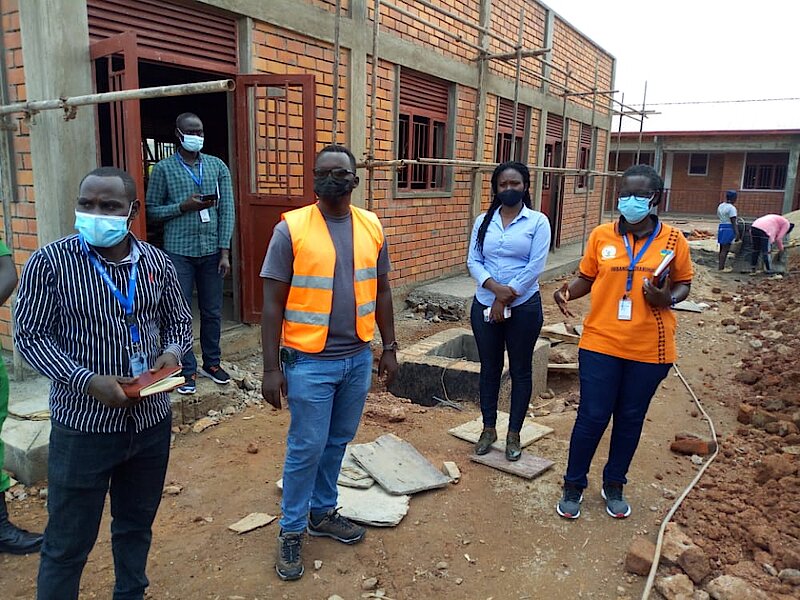Muri uru ruzinduko; Umuyobozi w’Akarere n’itsinda bari kumwe babanje gusura ahari kubakwa amacumbi y'abaganga ku Bitaro bya NYABIKENKE n’ahari kuvugururwa inyubako kuri TVET-Kiyumba, bashima aho imirimo y’ubwubatsi igeze ndetse banatanga inama zitandukanye zo kurushaho kwihutisha imirimo no kuyinoza neza.